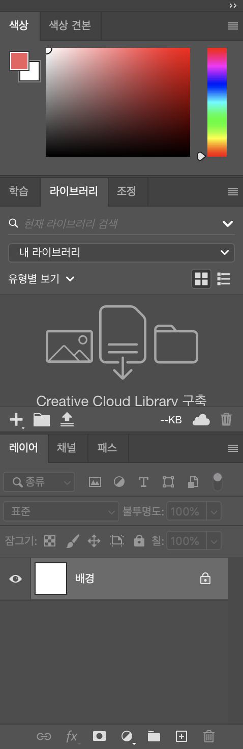 세 번째로는 패널입니다. 포토샵 오른쪽에 위치해 있죠. 패널에서는 색상, 라이브러리, 레이어, 타임라인 등 도구 외에 포토샵을 다룰 때 필요한 기능들을 보여줍니다. 도구 패널 못지않게 중요한 존재입니다.