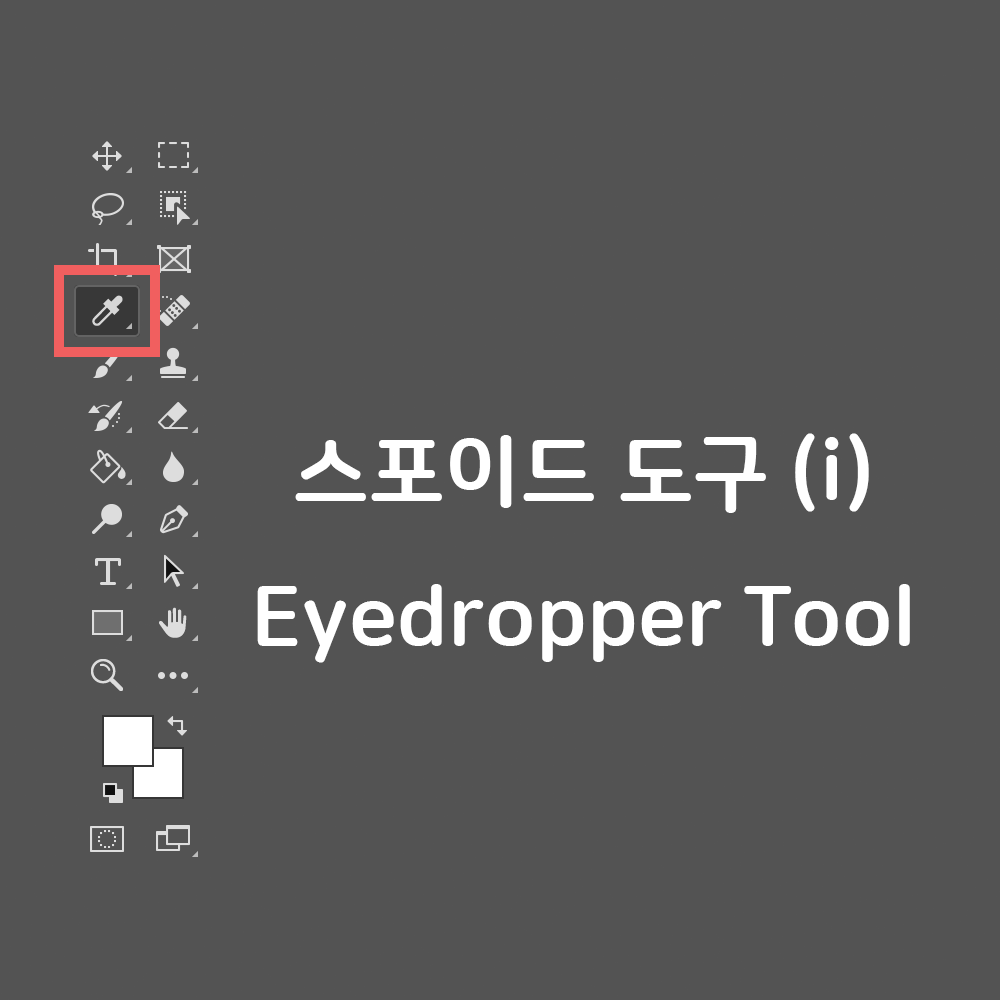 스포이드 도구(Eyedropper Tool)는 색상을 추출하는 도구입니다. 원하는 색상이 있다면 스포이드 도구를 선택한 다음 그 색을 클릭하면 추출이 됩니다. 이후에 도형이나 글을 추가할 때에 추출한 색으로 선택할 수가 있습니다. 기본 단축키는 I 키입니다.