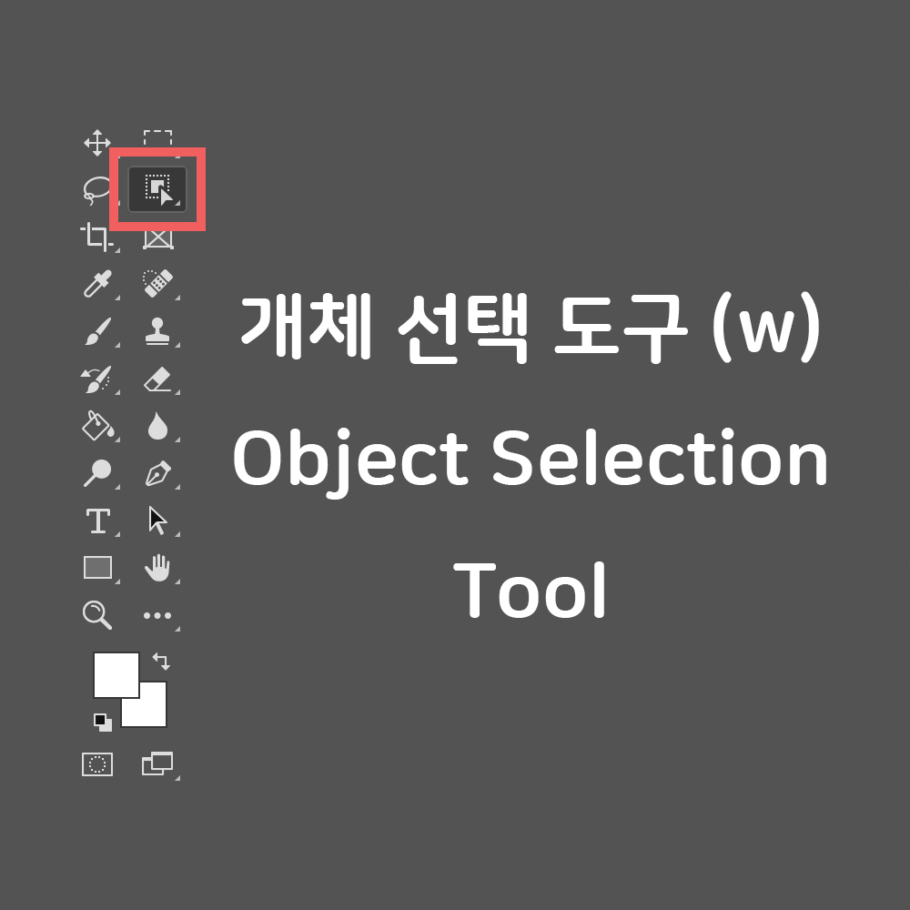 개체 선택 도구(Object Selection Tool)는 올가미 도구의 상위 버전이라 할 수 있습니다. 예를 들어 한 풍경 사진에서 나무만 선택을 하고 싶다면 올가미 도구로 나무 테두리를 따라 그리면서 선택을 해도 되지만 개체 선택 도구를 사용하면 일일이 따라 그리지 않더라도 자동으로 나무를 찾아서 선택을 할 수 있도록 도와줍니다. 사각형으로 영역을 선택하면 알아서 개체를 찾아 선택해 주죠. 기본 단축키는 W 키입니다.