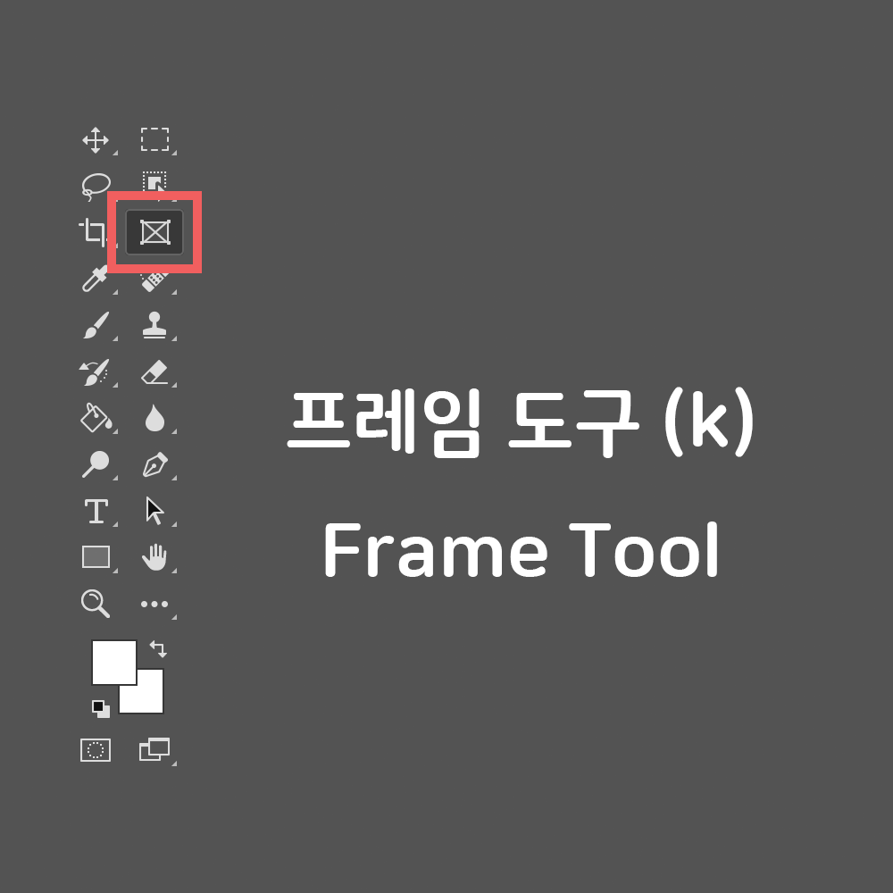 프레임 도구(Frame Tool)는 테두리를 정해주는 도구입니다. 프레임 도구로 테두리를 정하고 나면 그 정해진 태두리 내에서만 그림이 보일 수 있도록 해주죠. 프레임 툴로 설정한 테두리를 넘어가는 그림은 보이지 않습니다. 쉽게 설명해 보자면 종이에 구멍을 낸 후 사진 위에 더어 둔다고 생각하면 됩니다. 이렇게 하면 구멍이 뚫린 부분만 사진이 보이겠죠? 기본 단축키는 K 키입니다.